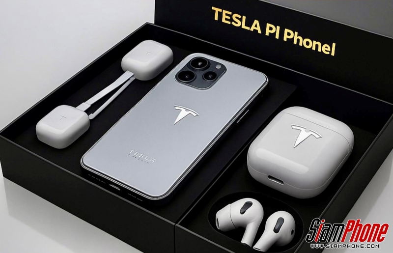 ตัวเครื่องทำจากไทเทเนียมบางเฉียบ, หน้าจอไร้ขอบโดยสมบูรณ์ (Zero Bezel) และฝาหลังที่เป็นผิวด้านที่เปลี่ยนสีระหว่างสีเงินและสีดำสนิทตามมุมที่แสงตกกระทบ โลโก้ Tesla "T" ที่ฝาหลังจะเรืองแสงจางๆ และทำหน้าที่เป็นเซนเซอร์ลายนิ้วมือไปในตัว ไม่มีโมดูลกล้องที่นูนออกมา, ไม่มีพอร์ตให้เห็น, ไม่มีถาดซิม มันคือความเรียบง่ายที่แฝงไปด้วยความน่าเกรงขาม