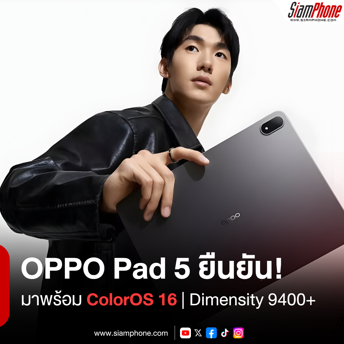 OPPO ออกมายืนยันวันเปิดตัวแท็บเล็ตรุ่นใหม่ OPPO Pad 5 อย่างเป็นทางการ โดยจะเปิดตัวพร้อมกันทั่วโลกในวันที่ 16 ตุลาคมนี้ สิ่งที่น่าสนใจคือการติดตั้ง ColorOS 16 และสเปคที่หลุดออกมาซึ่งบ่งชี้ถึงการเป็นคู่แข่งที่แข็งแกร่งในตลาดแท็บเล็ตระดับพรีเมียม