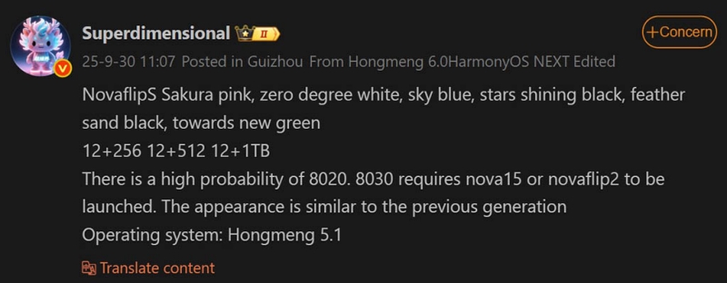 ตามรายงานจาก HUAWEI Central ระบุว่า Nova Flip S จะมาพร้อมกับชิปเซ็ตระดับกลางรุ่นใหม่ล่าสุดอย่าง Kirin 8030 ซึ่งเป็นการต่อยอดจาก Kirin 8020 ที่เคยสร้างความประทับใจมาแล้วในรุ่น nova 14 Ultra