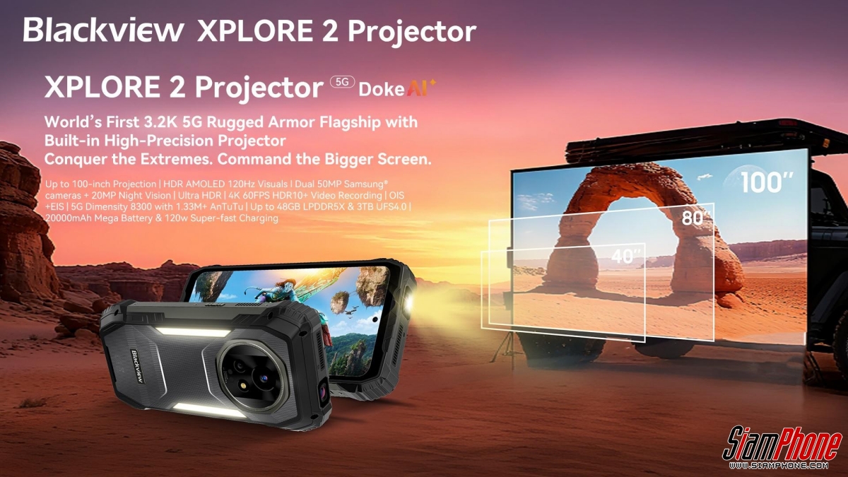 วงการสมาร์ตโฟนต้องสั่นสะเทือนอีกครั้ง! เมื่อ Blackview แบรนด์ที่ขึ้นชื่อเรื่องอุปกรณ์สุดทนทาน ได้เปิดตัว Blackview XPLORE 2 Projector และ Blackview XPLORE 2 สมาร์ตโฟน 5G พันธุ์แกร่งรุ่นแรกของโลก ที่ไม่ใช่แค่ถึก ทน แต่รุ่น Projector ยังมาพร้อมโปรเจคเตอร์ความแม่นยำสูงในตัว เปลี่ยนทุกที่เป็นโรงหนังส่วนตัวขนาด 100 นิ้วได้ทันที! นี่คือการผสมผสานที่ลงตัวระหว่างความบึกบึนและไลฟ์สไตล์อย่างที่ไม่เคยมีมาก่อน