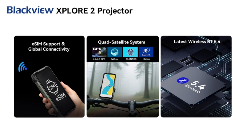 XPLORE 2 Series เป็นสมาร์ตโฟนพันธุ์แกร่งรุ่นแรกที่รองรับ eSIM ทำให้เชื่อมต่อได้ทั่วโลกโดยไม่ต้องใช้ซิมการ์ดจริง พร้อมระบบระบุตำแหน่ง Quad-Satellite (GPS L1+L5, BeiDou, GLONASS, Galileo) ที่ให้ความแม่นยำสูงสุดในระดับ 1 เมตร และมาพร้อม Bluetooth 5.4 รุ่นล่าสุด นอกจากนี้ Blackview ยังมอบบริการหลังการขายเต็มรูปแบบตลอด 24 ชั่วโมง