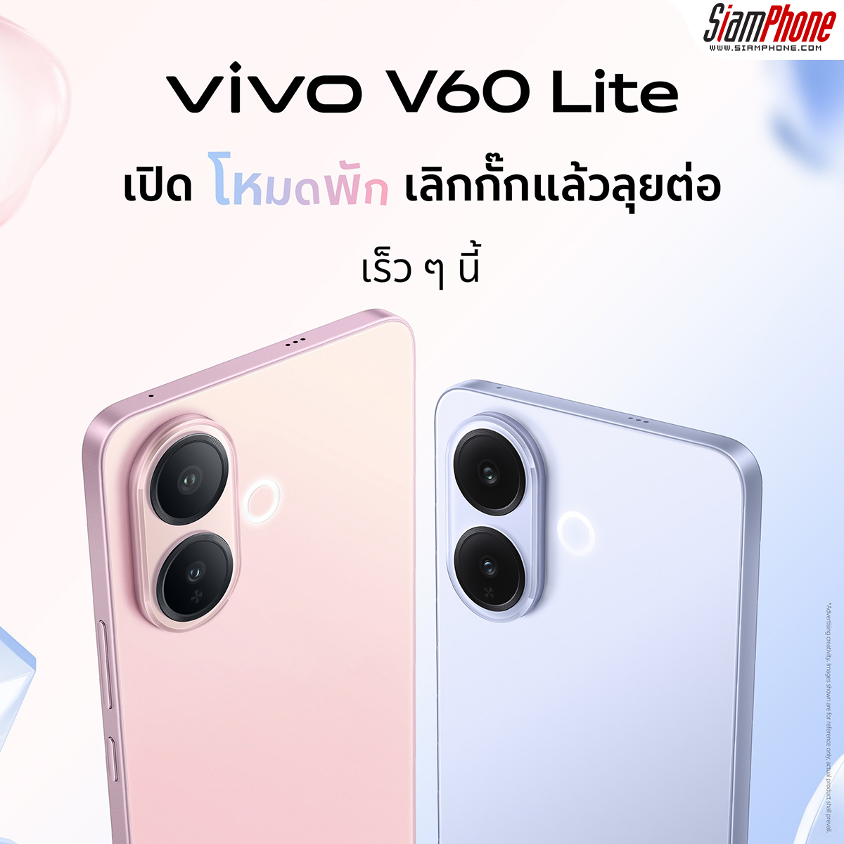 เตรียมตัวเปิดโหมดพัก เลิกกั๊ก แล้วลุยต่อไปกับ vivo และสมาร์ตโฟน V60 Lite ที่จะพร้อมวางจำหน่ายในตลาดประเทศไทยอย่างเป็นทางการในวันที่ 18 ตุลาคม 2568 นี้ ผู้ที่สนใจสามารถสอบถามรายละเอียดเพิ่มเติมได้ที่เฟซบุ๊ก vivo Thailand และเว็บไซต์ https://www.vivo.com/th