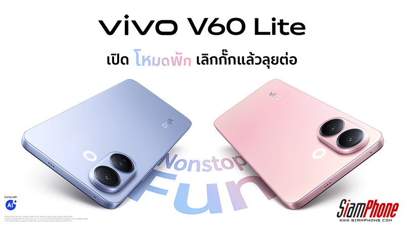 vivo พร้อมพาทุกคนก้าวข้ามทุกสถานการณ์ที่กั๊กความสนุกในชีวิต ด้วยการนำเสนอสมาร์ตโฟนรุ่นใหม่ล่าสุด vivo V60 Lite ภายใต้แนวคิด “เปิดโหมดพัก เลิกกั๊ก แล้วลุยต่อ” ที่ออกแบบมาเพื่อตอบโจทย์ไลฟ์สไตล์คนรุ่นใหม่ที่ต้องการใช้งานสมาร์ตโฟนในการพักผ่อน เพื่อหลีกหนีจากสิ่งที่ทำต่อเนื่องตลอดทั้งวัน ไม่ว่าจะเป็นการ 'พักชาร์จ' แบตเตอรี่ 'พักงาน' เพื่อรีบูตสมอง หรือ 'พักเล่น' เกม ก็สามารถทำได้อย่างเต็มที่ด้วยประสิทธิภาพที่ให้มาแบบ "ไม่กั๊ก" เตรียมส่งมอบถึงมือผู้ใช้งานชาวไทยอย่างเป็นทางการ วันที่ 18 ตุลาคม 2568 นี้