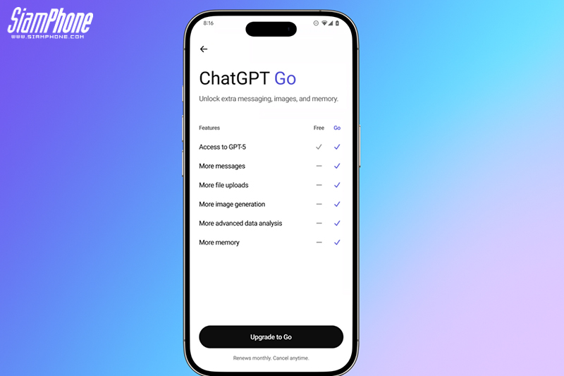 เมื่อเทียบกับแผนใช้งานฟรี แผน ChatGPT Go มาพร้อมกับฟีเจอร์ไฮไลท์ ดังนี้