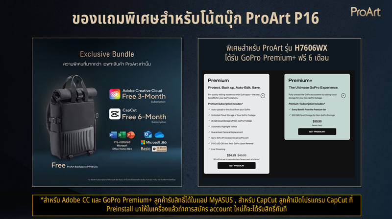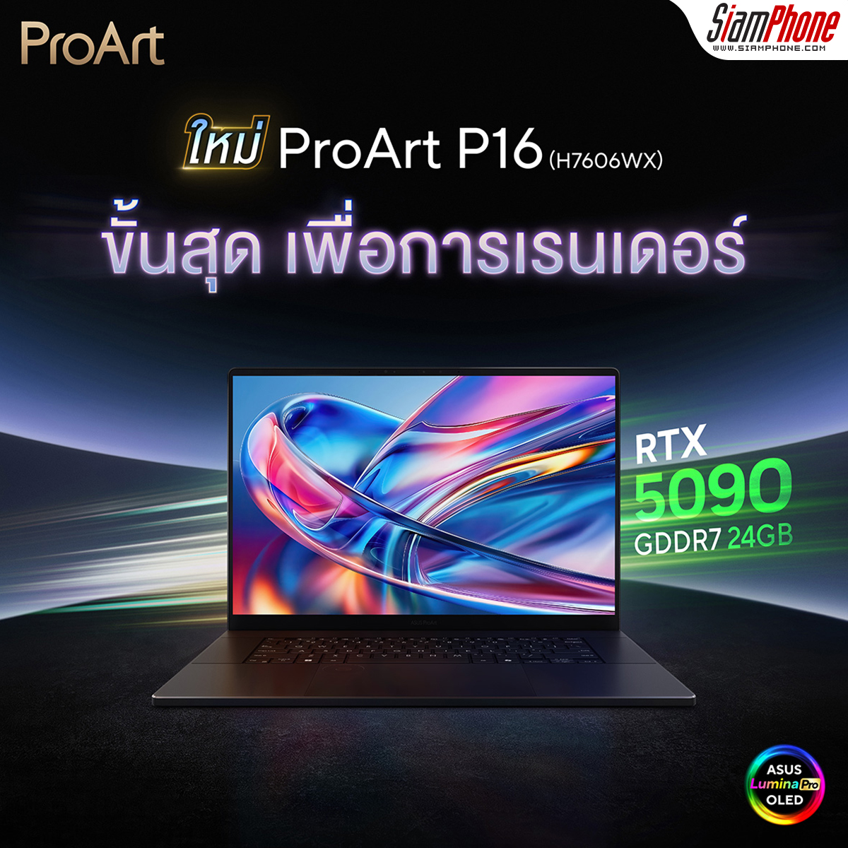 ProArt P16 คือการผสมผสานที่ลงตัวของความคล่องตัว ประสิทธิภาพ และความยืดหยุ่นระดับมืออาชีพ มาพร้อมชุดซอฟแวร์สำหรับงานสร้างสรรค์ รับสิทธิ์ใช้งาน Adobe Creative Cloud ทุกแอปพลิเคชันฟรี 3 เดือน และใช้งาน Capcut ได้ฟรีนาน 6 เดือน พิเศษยิ่งขึ้นสำหรับ ProArt P16 (H7606WX) รับ GoPro Premium+ ฟรี 6 เดือน มาพร้อม Windows 11 Home และ Microsoft Office Home 2024 พิเศษพร้อมด้วย Microsoft 365 Basic ฟรี 12 เดือน พร้อมการรับประกันซ่อมถึงที่นาน 3 ปี (On-Site Service), รับบริการครอบคลุมกว่า 80 ประเทศทั่วโลก 3 ปี, และประกันอุบัติเหตุ 1 ปีแรก (Perfect Warranty) ผู้ที่สนใจสามารถสั่งซื้อสินค้าได้แล้ววันนี้ใน ราคา 155,990 บาท ณ ร้านค้าไอทีชั้นนำทั่วประเทศ และช่องทางออนไลน์ ASUS Official Store