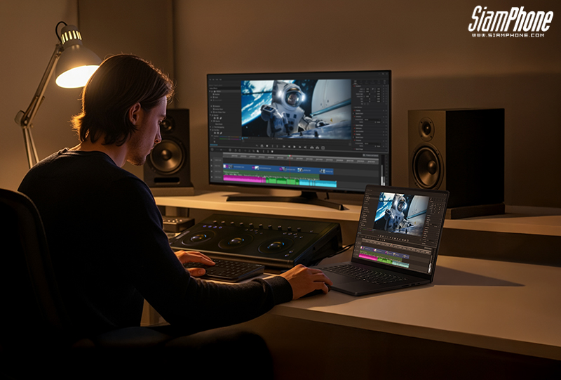 ProArt P16 ผสานทุกสิ่งที่ครีเอเตอร์ต้องการไว้ในโซลูชันที่ทรงพลังและออกแบบมาโดยเฉพาะสำหรับสายสร้างสรรค์ ด้วยการ์ดจอล่าสุด NVIDIA GeForce RTX 5090 Laptop นับเป็นก้าวกระโดดของวงการตัดต่อวีดีโอ มอบทั้งความเร็วและเสถียรภาพที่ไร้เทียมทาน รองรับสีแบบ 10-bit 4:2:2 การเข้ารหัส/ถอดรหัสวิดีโอ 4K/8K ได้อย่างรวดเร็ว การประมวลผลเอฟเฟกต์ AI อันทรงพลังยังช่วยเร่งงานอย่างเช่น การลดนอยส์, การอัปสเกลภาพ และการตรวจจับฉากอัตโนมัติ ทำให้ลดภาระงานของเหล่าครีเอเตอร์ได้อย่างมาก หน่วยความจำกราฟิก (VRAM) ขนาดใหญ่ยังช่วยให้จัดการกับไฟล์ขนาดใหญ่และองค์ประกอบที่ซับซ้อนได้อย่างราบรื่น ไม่มีสะดุดหรือเฟรมตก ในขณะที่โหมด AV1 Ultra High Quality ก็ช่วยให้การบีบอัดไฟล์มีประสิทธิภาพมากขึ้นโดยไม่ลดคุณภาพของภาพ