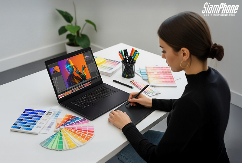 หน้าจอ ASUS Lumina Pro OLED รุ่นล่าสุดนี้ออกแบบมาเพื่อครีเอเตอร์ระดับมืออาชีพโดยเฉพาะ ให้ค่าสีที่แม่นยำเที่ยงตรง สีสันสดใส คอนทราสต์ลึก และยังถนอมสายตาผู้ใช้ ProArt P16 รุ่นล่าสุดที่มาพร้อม NVIDIA RTX AI นี้ยังช่วยเร่งความเร็วในการสร้างสรรค์งาน รวมถึงการใช้แอปพลิเคชัน AI จาก ASUS อย่าง StoryCube และ MuseTree เป็นโน้ตบุ๊ก Copilot+ PC ที่ให้คุณทำงานได้เร็วขึ้น ฉลาดขึ้น และมีประสิทธิภาพมากกว่าที่เคย