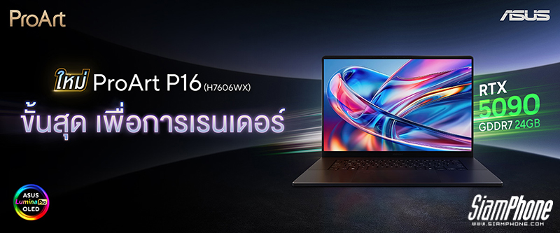 เอซุส (ประเทศไทย) เปิดตัว ProArt P16 โน้ตบุ๊กสำหรับสายครีเอเตอร์วีดีโอระดับมืออาชีพ ออกแบบมาเพื่อให้พลังในการสร้างสรรค์ทั้งในสตูดิโอและขณะเดินทาง รองรับเวิร์กโฟลว์ของครีเอเตอร์ในหลากหลายสายงาน ไม่ว่าจะเป็นงานภาพยนตร์และตัดต่อวิดีโอ, แอนิเมชันและออกแบบเกม, Vlogging, ช่างภาพ, กราฟิกดีไซเนอร์, นักออกแบบผลิตภัณฑ์(Product Design & Manufacturing) มาพร้อมโปรเซสเซอร์ AMD Ryzen™ AI 9 HX 370 ที่ให้ความสามารถในการประมวลผล AI ถึง 50 TOPS พร้อมด้วย NVIDIA® GeForce RTX™ 5090 Laptop GPU ให้ประสิทธิภาพด้าน AI อย่างเหนือชั้น รองรับการตัดต่อวีดีโอระดับโปร เล่นไฟล์ 4K/8K ได้อย่างลื่นไหล ส่งออกไฟล์ได้ไวขึ้น และเสถียรยิ่งขึ้นสำหรับไฟล์ที่มีความละเอียดสูง