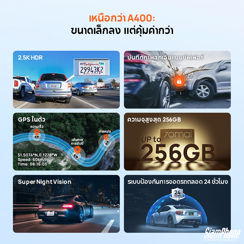 ไม่ว่าคุณจะเป็นผู้ใช้กล้องติดรถยนต์มือใหม่ หรือกำลังมองหากล้องรุ่นอัปเกรดที่เรียบง่ายและวางใจได้ กล้องติดรถยนต์ 70mai A410 คือจุดเริ่มต้นที่สมบูรณ์แบบ ด้วยความละเอียดแท้จริงระดับ 2.5K สำหรับกล้องหน้า และ 1080P สำหรับกล้องหลัง โดยกล้องติดรถยนต์ 70mai A410 สามารถบันทึกภาพได้อย่างคมชัดและละเอียดทุกมุม ไม่พลาดทุกช่วงเวลาสำคัญ ตั้งแต่ป้ายทะเบียนไปจนถึงป้ายจราจร ทั้งกลางวันและกลางคืน