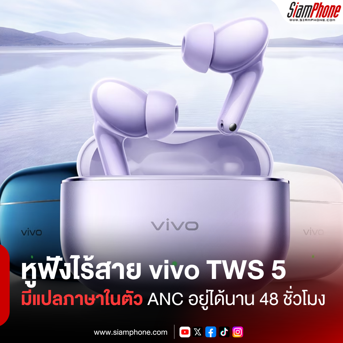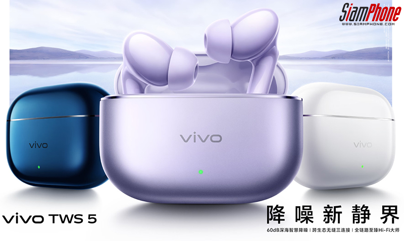 vivo TWS 5 หูฟังไร้สาย TWS รุ่นใหม่จากแบรนด์ vivo ถูกเปิดตัวอย่างเป็นทางการในประเทศจีน โดยเป็นหูฟังระดับเรือธง พร้อมพกไดร์เวอร์เสียง Dynamic ขนาด 11 มิลลิเมตร พร้อมตัวเลือก 2 เวอร์ชั่นแบ่งเป็น Hi-Fi เวอร์ชั่นรองรับการแปลงสัญญาณ AAC, SBC, และ LDAC ส่วนอีกเวอร์ชั่นคือ Hi-Fi รองรับ LHDC playback และ DeepX 4.0 stereo เพิ่มเข้ามา นอกจากนี้ยังมีเทคโนโลยีตัดเสียงรบกวน ANC สามารถตัดเสียงรบกวนได้ 60 เดซิเบล และยังสามารถคุยสายได้ทันที เพราะมีไมโครโฟนในตัว