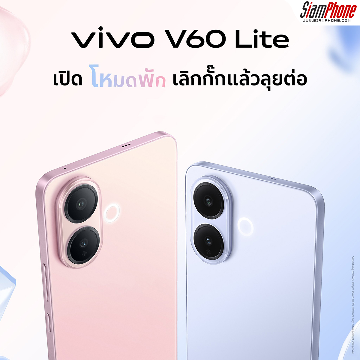 vivo เปิดตัวสมาร์ตโฟนน้องเล็กรุ่นล่าสุดจากตระกูล V Series อย่าง V60 Lite ภายใต้คอนเซปต์ “เปิดโหมดพัก เลิกกั๊ก แล้วลุยต่อ” หรือ “Nonstop Fun” ที่ออกแบบมาเพื่อตอบโจทย์ไลฟ์สไตล์คนรุ่นใหม่ที่ต้องการใช้งานสมาร์ตโฟนในการพักผ่อน ไม่ว่าจะเป็นการ 'พักชาร์จ' แบตเตอรี่ 'พักงาน' เพื่อรีบูตสมอง หรือ 'พักเล่น' เกม ก็สามารถทำได้อย่างเต็มที่ด้วยสเปกสุดแกร่งอย่างขุมพลัง MediaTek Dimensity 7360-Turbo พร้อมแบตเตอรี่ BlueVolt ความจุสูงถึง 6500 mAh ที่มอบประสบการณ์การใช้งานที่ทรงพลังและยาวนานกว่าที่เคย เสริมความอึดด้วยตัวเครื่องที่ผ่านการทดสอบความแข็งแกร่งระดับสากล ใช้งานได้อย่างมั่นใจในทุกสถานการณ์ด้วยมาตรฐานทนน้ำทนฝุ่น IP65