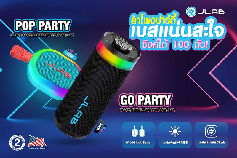 บริษัท อาร์ทีบี เทคโนโลยี จำกัด เปิดตัวลำโพงบลูทูธพกพารุ่นใหม่ล่าสุดจากแบรนด์ JLab สองรุ่น ได้แก่ JLab Go Party และ JLab Pop Party ซึ่งออกแบบมาเพื่อตอบโจทย์ไลฟ์สไตล์สายปาร์ตี้ยุคใหม่ ด้วยพลังเสียงสุดเร้าใจ เอฟเฟกต์ไฟ RGB สุดล้ำ และฟีเจอร์ LabSync ที่ให้ผู้ใช้สามารถเชื่อมต่อลำโพง JLab Party รุ่นอื่นๆ ได้สูงสุดถึง 100 ตัว เพื่อสร้างบรรยากาศปาร์ตี้ที่สนุกสุดเหวี่ยง หรือจะเลือกปรับเป็นระบบเสียงสเตอริโอผ่านแอปพลิเคชัน JLab ก็สามารถทำได้ ผู้ที่สนใจสามารถมาทดสอบคุณภาพเสียงของลำโพงทั้งสองรุ่นได้ที่บูธ RTB หมายเลข CM5 และ CM6 ภายในงาน Thailand Mobile Expo ระหว่างวันที่ 23–26 ตุลาคม 2568 ณ ศูนย์การประชุมแห่งชาติสิริกิติ์