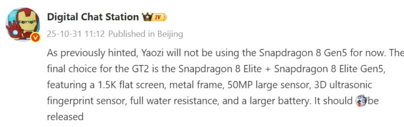 แม้ว่าทาง HONOR จะยังไม่มีการประกาศอย่างเป็นทางการ แต่ข้อมูลจาก Digital Chat Station ผู้ให้ข้อมูลวงในที่มีชื่อเสียงบน Weibo ได้เผยรายละเอียดสำคัญของ HONOR GT 2 Series ออกมาแล้ว โดยคาดการณ์ว่าสมาร์ตโฟนรุ่นนี้จะเปิดตัวภายในสิ้นปี 2025 นี้