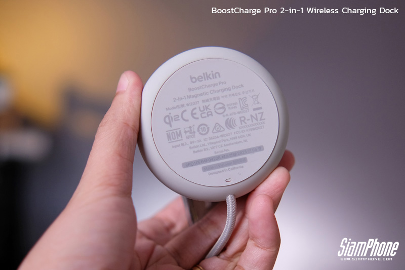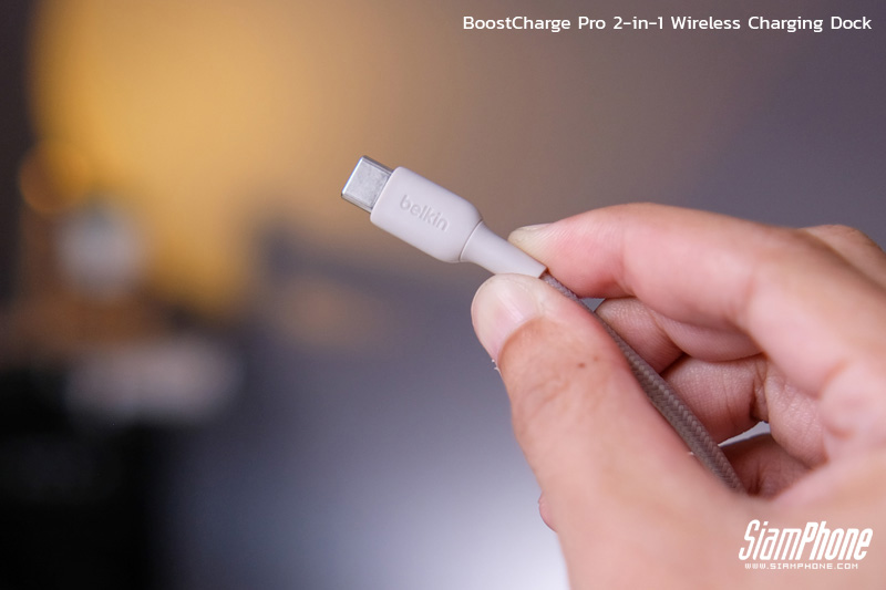 เรื่องดีไซน์ Belkin ไม่เคยทำให้ผิดหวัง ตัวฐานมีน้ำหนักกันลื่นถึง 450 กรัม ช่วยให้วาง iPhone หรือหยิบออกได้ด้วยมือเดียวอย่างมั่นคง ไม่โยกเยก และที่น่าชื่นชมคือตัวแท่นชาร์จทำจากวัสดุรีไซเคิลไม่น้อยกว่า 60% แถมยังมาในแพ็คเกจปลอดพลาสติก 100% ช่วยลดโลกร้อนไปในตัว มาพร้อมสาย USB-C แบบถักยาว 1.5 เมตร ที่ดูทนทานพรีเมียม