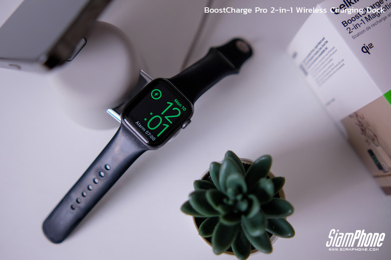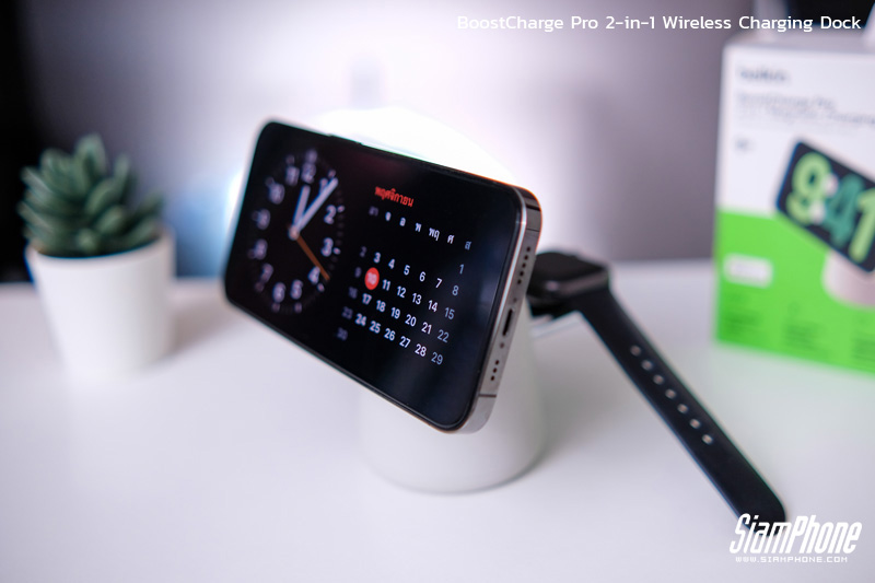 แน่นอนว่ามาแบบ 2-in-1 ก็ต้องชาร์จ Apple Watch ได้ด้วย โดยแท่นชาร์จรุ่นนี้มาพร้อมแท่นชาร์จแม่เหล็กสำหรับ Apple Watch (รองรับ Series 4 ขึ้นไป) ที่จ่ายไฟสูงสุด 5W และที่สำคัญ ยังรองรับคุณสมบัติชาร์จเร็วให้กับ Apple Watch Series 7, 8, 9 และ Apple Watch Ultra อีกด้วย