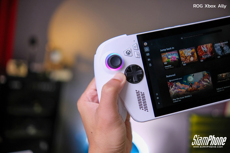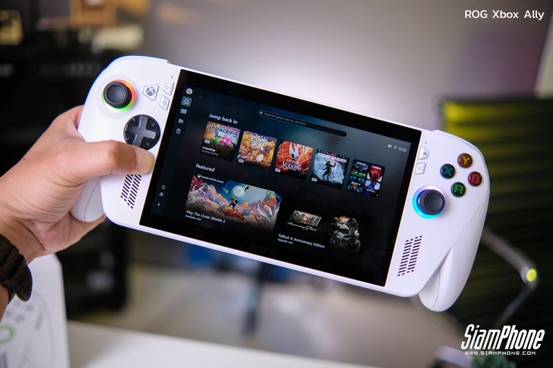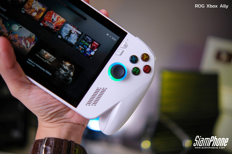 เครื่องนี้ถูกออกแบบร่วมกับทีม Xbox เพื่อมอบประสบการณ์ “Xbox full screen experience” อย่างแท้จริง ตั้งแต่เปิดเครื่องก็พร้อมเข้าสู่โหมดเกมเต็มจอทันที และสามารถเข้าถึง Game Bar ได้อย่างรวดเร็วผ่านปุ่ม Xbox เดียว ไม่ว่าจะบันทึกการเล่น พูดคุยกับเพื่อน หรือปรับตั้งค่าผ่าน Command Center ก็ทำได้ง่ายดาย นอกจากนี้ ด้วยระบบปฏิบัติการ Windows 11 ผู้เล่นยังเข้าถึงคลังเกมจาก Xbox, Steam, Epic Games และแพลตฟอร์มอื่นๆ ได้ทั้งหมด