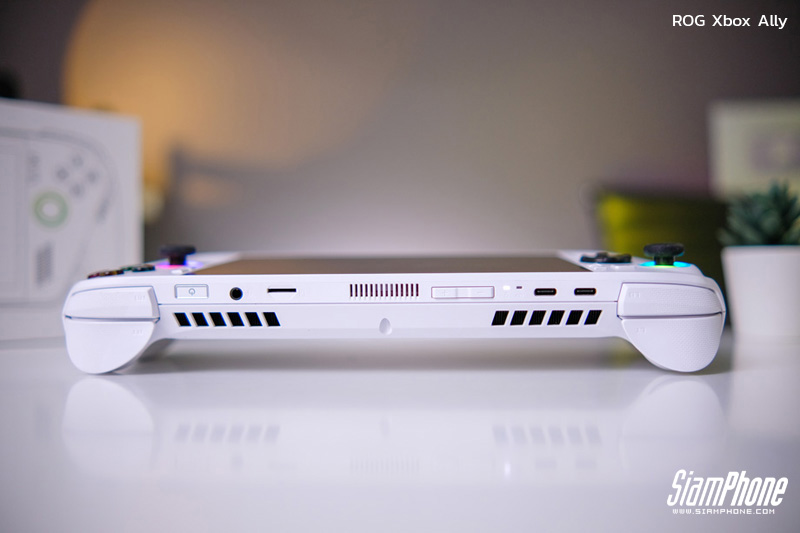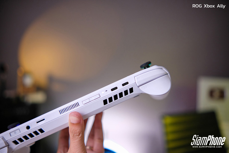 ROG Xbox Ally มาพร้อมแบตเตอรี่ขนาดใหญ่ 60Wh ที่รองรับการชาร์จเร็วผ่าน USB-C PD 65W ให้เล่นเกมได้นานและพร้อมกลับมาเต็มพลังในเวลาไม่นาน สามารถปรับโหมดพลังงานได้ทั้ง Turbo เพื่อการเล่นที่ลื่นไหล หรือ Silent สำหรับการใช้งานที่เงียบและยืดอายุแบตให้ยาวที่สุด นอกจากนี้ยังมีพอร์ตครบครันทั้ง USB-C 2 ช่อง, microSD UHS-II, ช่องหูฟัง 3.5 มม. และเชื่อมต่อไร้สายด้วย WiFi 6E + Bluetooth 5.4
