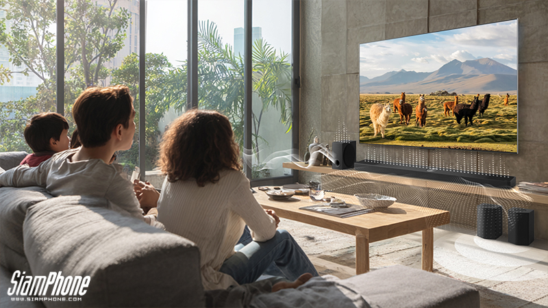 ไม่ว่าคุณจะรับชมภาพยนตร์ ฟังเพลง หรือดูข่าว AI Sound Pro จะวิเคราะห์เนื้อหาและปรับแต่งเสียงให้เหมาะสมโดยอัตโนมัติ มอบความคมชัดและมิติเสียงที่ลงตัวในทุกสถานการณ์ และเพื่อคุณภาพเสียงที่สมบูรณ์แบบในทุกพื้นที่ AI Room Calibration Pro จะเข้ามาทำหน้าที่วิเคราะห์สภาพห้องของคุณอย่างละเอียด ปรับจูนเสียงให้กระจายทั่วทุกมุมห้องอย่างแม่นยำ คุณยังสามารถปรับ EQ 3 แบนด์ อย่าง เบส กลาง และ แหลม สำหรับลำโพงหลังได้อย่างละเอียด เพื่อลดการบิดเบือนของเสียงและเพิ่มความแม่นยำสูงสุด