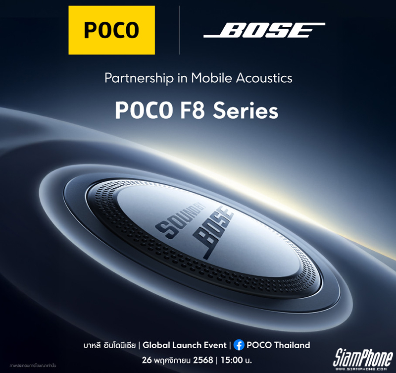 POCO F8 Series ว่าที่สมาร์ตโฟนเรือธงรุ่นใหม่จากแบรนด์ POCO เตรียมลืมตาดูโลกเร็วๆ นี้ หลังจาก POCO ได้ประกาศวันเปิดตัวอย่างเป็นทางการ ในวันที่ 26 พฤศจิกายน 2568 เวลา 15.00 น. ตามเวลาในประเทศไทย ซึ่งคาดว่าจะเปิดตัวด้วยกัน 2 รุ่นคือ POCO F8 Pro และ POCO F8 Ultra