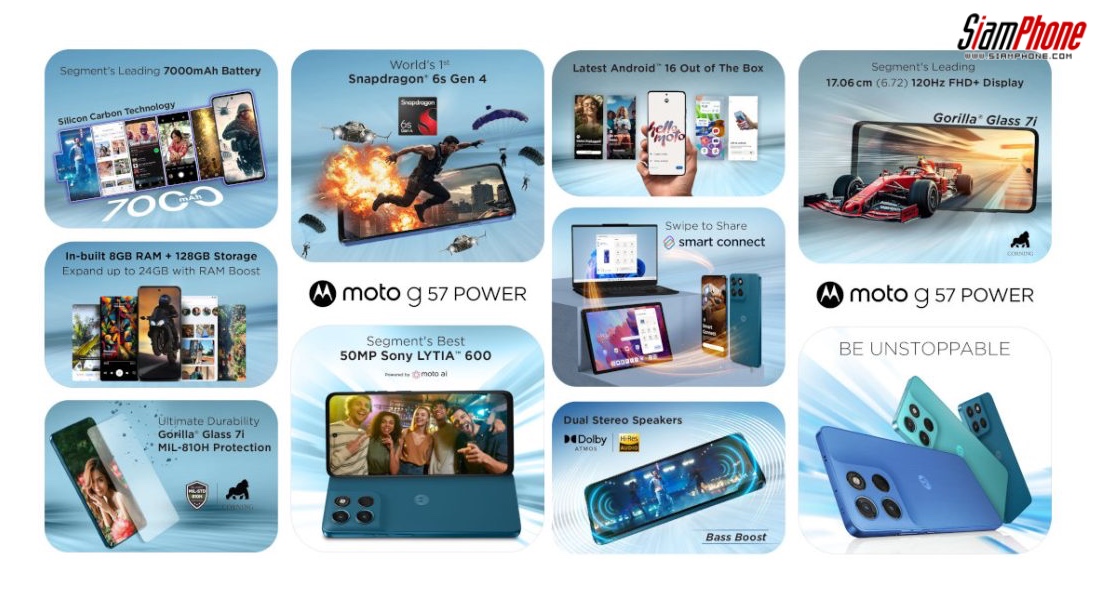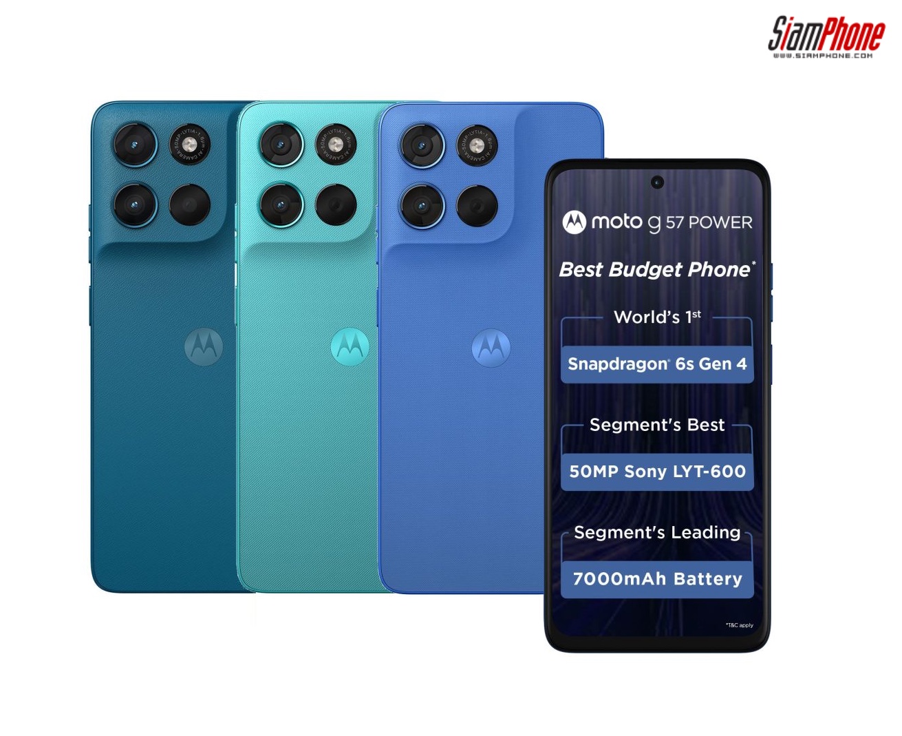 moto G57 Power สมาร์ตโฟนรุ่นล่าสุดจาก motorola ได้เปิดตัวอย่างเป็นทางการในตลาดอินเดีย โดยชูจุดเด่นในฐานะ "Best Budget Phone" ที่เน้นประสิทธิภาพและอายุการใช้งานแบตเตอรี่ที่ยาวนาน คุณสมบัติหลักที่ทำให้ moto G57 Power โดดเด่นคือ แบตเตอรี่ความจุ 7,000mAh ซึ่งถือเป็นขนาดที่ใหญ่ที่สุดในกลุ่มผลิตภัณฑ์เดียวกัน พร้อมรองรับเทคโนโลยีชาร์จเร็ว 33W TurboPower ที่ช่วยให้ผู้ใช้สามารถใช้งานได้ต่อเนื่องยาวนานถึง 60 ชั่วโมงต่อการชาร์จหนึ่งครั้ง ในด้านประสิทธิภาพ เครื่องนี้ขับเคลื่อนด้วยชิปเซ็ตใหม่ล่าสุด Qualcomm Snapdragon 6s Gen 4 (4nm) ซึ่งนับเป็นรุ่นแรกของโลกที่ใช้ชิปฯ ดังกล่าว จับคู่ด้วย RAM 8GB (LPDDR4X) และฟีเจอร์ RAM Boost ที่สามารถขยายหน่วยความจำเพิ่มเติมได้สูงสุดถึง 24GB