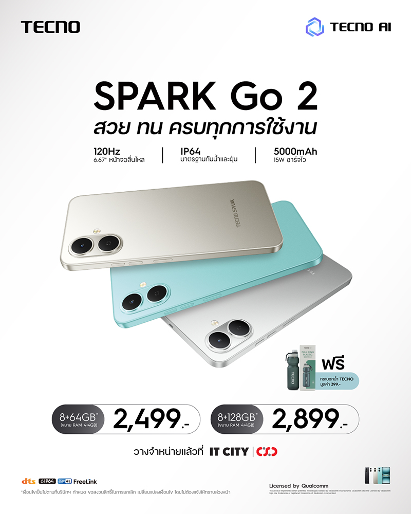 โดย TECNO Spark Go2 และ TECNO Spark 40C ยังสามารถโทรคุยกันได้แม้ไร้สัญญาณ ด้วย Free-Link ปลดล็อกอิสระในการสื่อสารได้ทุกที่ ทุกเวลา วางจำหน่ายพร้อมกันแล้ววันนี้ที่ IT City ทุกช่องทางทั้งหน้าร้านและออนไลน์ ดูรายละเอียดเพิ่มเติมได้ที่ www.itcity.in.th และผู้สนใจสามารถติดตามข่าวสารความเคลื่อนไหวและกิจกรรมดีๆ พร้อมโปรโมชันพิเศษจากเทคโน ได้ทาง
