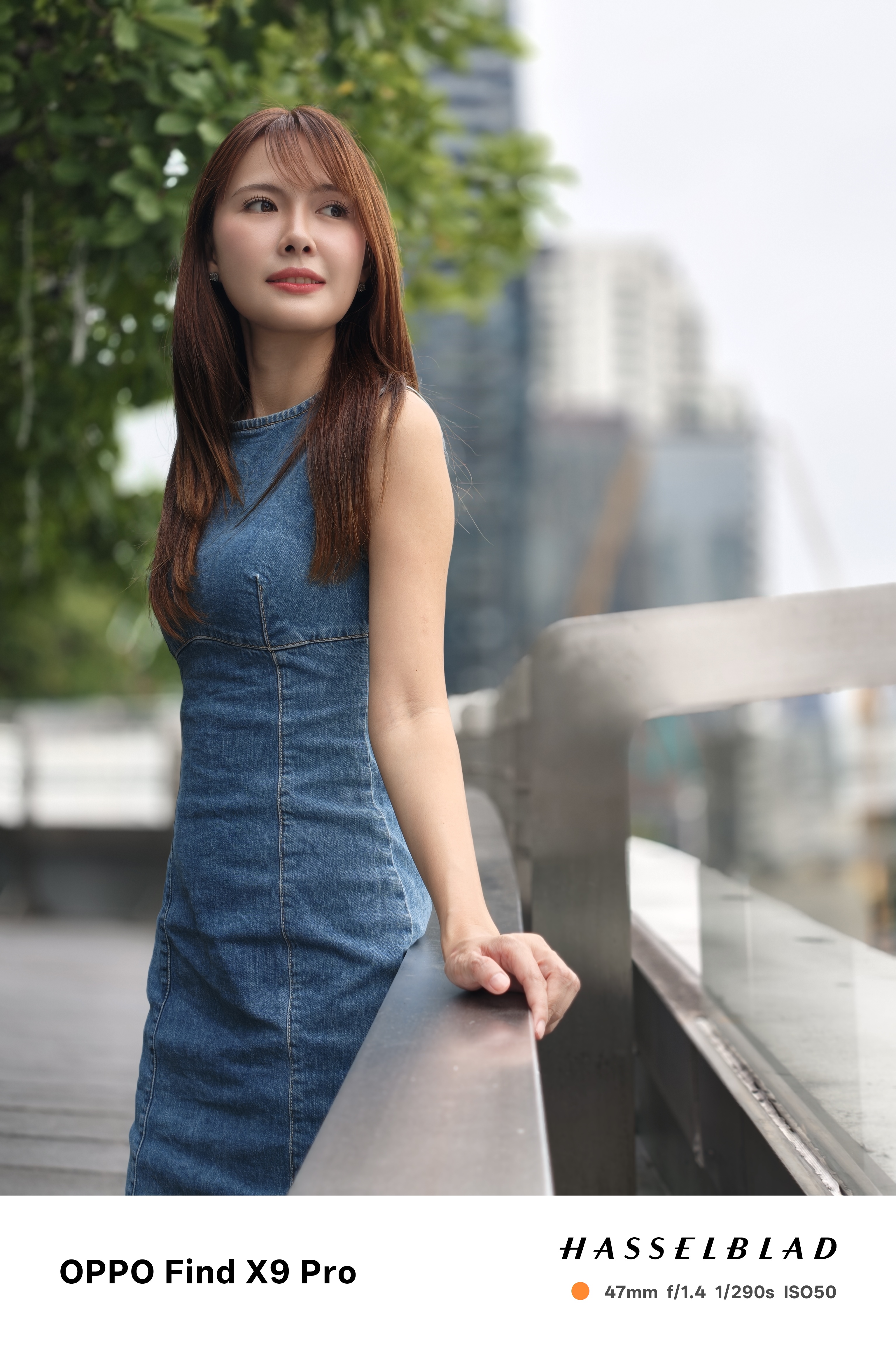 การถ่ายคนก็เป็นอีกจุดที่ OPPO Find X9 Pro ทำได้โดดเด่น จากการร่วมมือกับ Hasselblad โดยเฉพาะโหมด Portrait ที่ให้โทนผิวดูสวยเป็นธรรมชาติ ไม่อมเหลือง ไม่ชมพูเกิน และไม่เนียนหลอกตา โบเก้ที่ได้ดูละมุนคล้ายกล้องเลนส์ Portrait จริง แยกตัวแบบออกจากฉากหลังได้เนียนมาก ยิ่งถ่ายในสภาพแสงยากๆ อย่างแสงเย็นหรือแสงผสม ก็ยังควบคุมสีผิวและแสงบนใบหน้าได้ดี รู้สึกได้ว่าภาพดูพรีเมียมขึ้นแบบเห็นได้ชัด