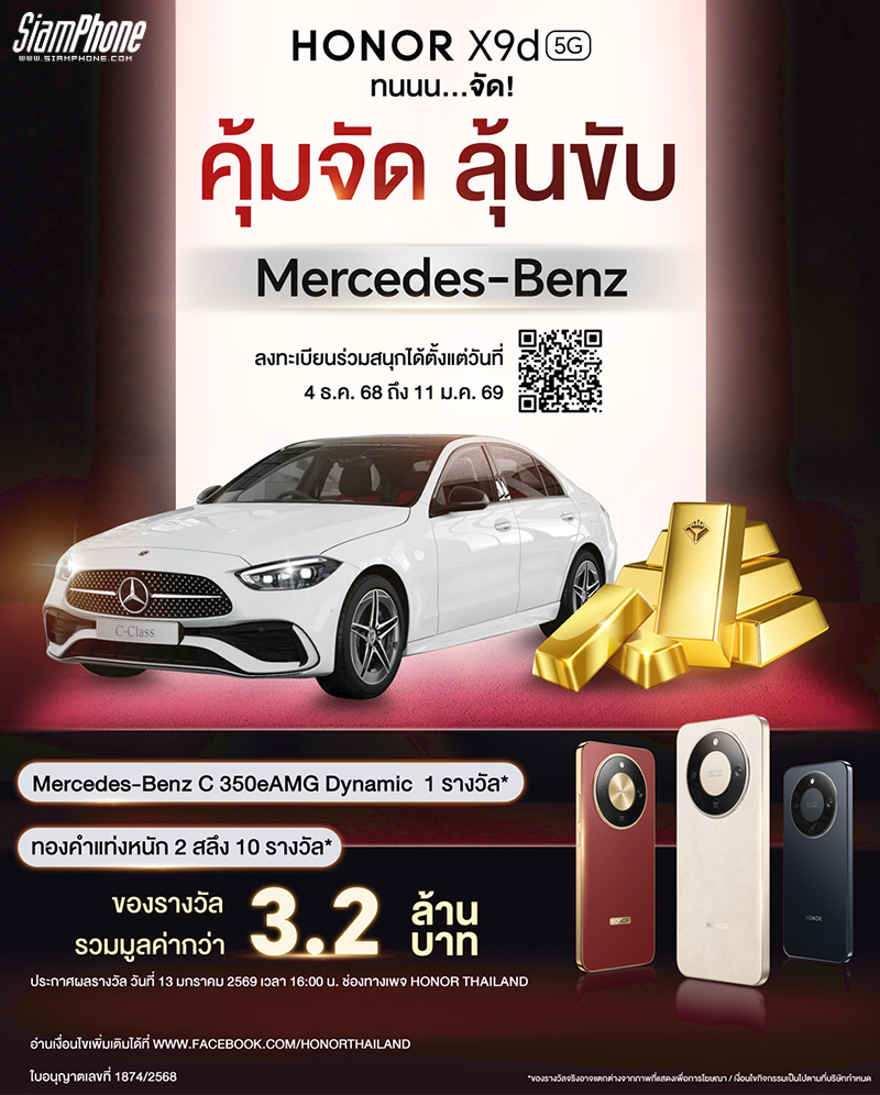 เพื่อเป็นการขอบคุณทุกเสียงตอบรับและความไว้วางใจจากผู้ใช้ทั่วประเทศ HONOR ขอมอบความพิเศษส่งท้ายปีด้วยโปรโมชันที่ ‘คุ้มมม...จัด!’ สำหรับผู้ที่ซื้อ HONOR X9d 5G ตั้งแต่วันนี้ - 31 ธันวาคม 2568 รับข้อเสนอสุดพิเศษทันที 3 ต่อ