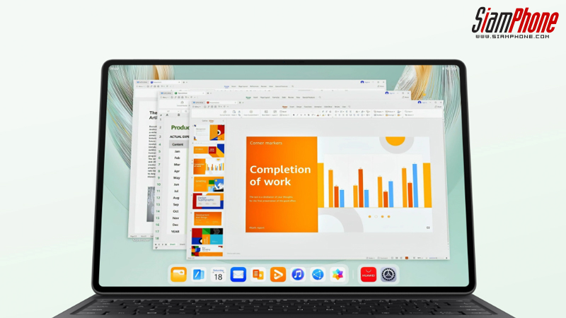 ไม่เพียงแต่การทำงานเท่านั้น แต่ยังมีฟีเจอร์ที่ช่วยให้คุณจัดการงานบนแท็บเล็ตเหมือนการใช้งานบนคอมพิวเตอร์จริงๆ ด้วยการลากหน้าต่าง สลับแอปพลิเคชัน และใช้งานพร้อมกันหลายหน้าจออย่างลื่นไหล HUAWEI