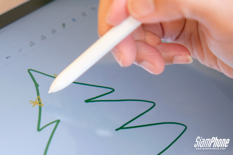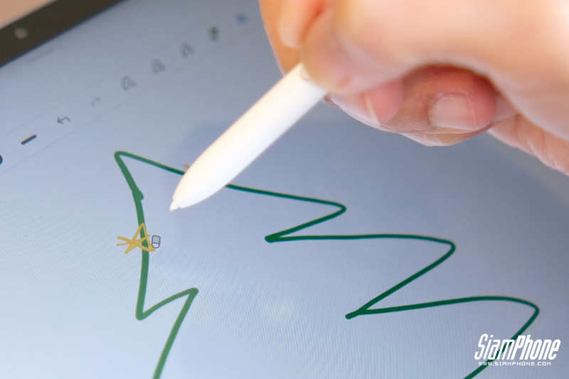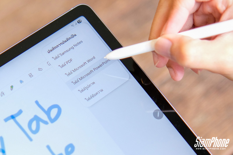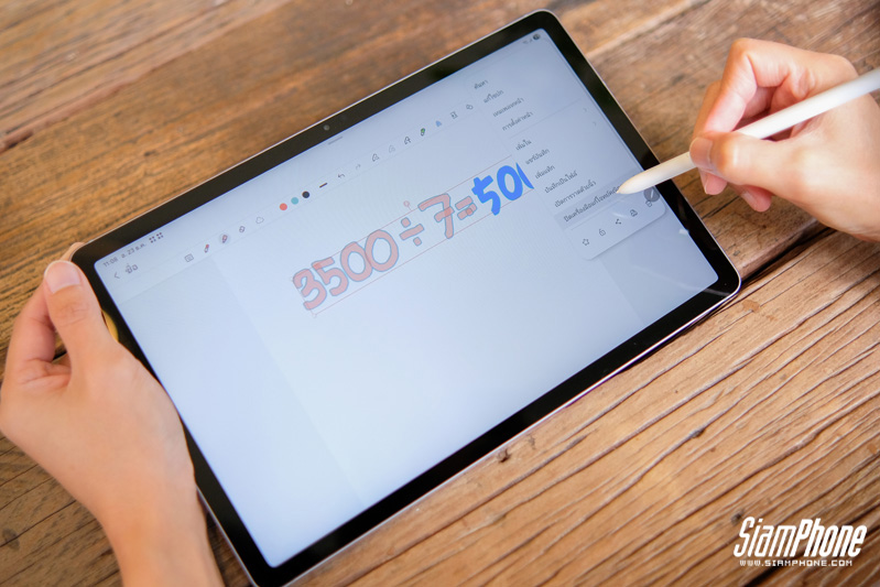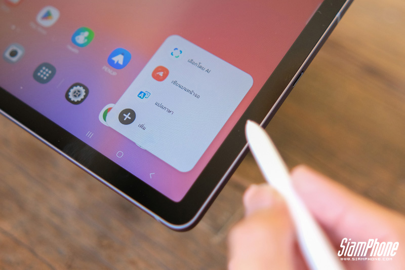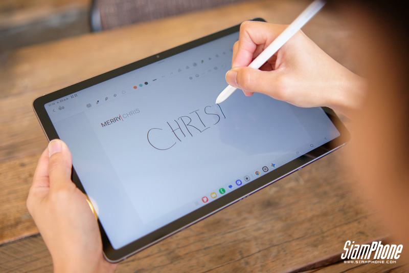 หัวใจสำคัญของรุ่นนี้คือ S Pen ที่แถมมาในกล่อง ซึ่งให้ฟีเจอร์ระดับ Pro แบบไม่ต้องจ่ายเพิ่ม ผู้ใช้สามารถวางมือบนหน้าจอขณะเขียนได้ ให้ความรู้สึกเหมือนเขียนบนกระดาษจริงและหากเขียนผิดก็เพียงกดปุ่มที่ด้ามปากกาค้างไว้เพื่อใช้เป็นยางลบ นอกจากนี้ยังอัดแน่นด้วยฟีเจอร์อำนวยความสะดวกอย่าง Screen Off Memo ที่ให้คุณเคาะหน้าจอ 2 ครั้งเพื่อจดบันทึกได้ทันทีโดยไม่ต้องปลดล็อกเครื่อง หรือใช้ Air Command เพื่อเรียกใช้เครื่องมือด่วนอย่าง Translate (แปลภาษา), Smart Select (ครอปภาพ), Create GIF (สร้างภาพเคลื่อนไหว) หรือใช้ S Pen to Text เขียนลงช่องค้นหาแล้วแปลงเป็นตัวพิมพ์ได้ทันที