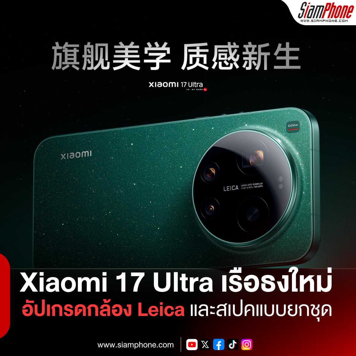 Xiaomi เปิดตัว Xiaomi 17 Ultra สมาร์ตโฟนเรือธงรุ่นใหม่ในประเทศจีน โดยยังคงเน้นจุดขายด้านกล้องระดับโปรที่พัฒนาร่วมกับ Leica มาพร้อมกล้องหลักความละเอียด 50MP เซนเซอร์ขนาด 1 นิ้ว เสริมด้วยกล้อง Telephoto ความละเอียดสูงถึง 200MP รองรับการซูมระยะไกล และกล้อง Ultra Wide 50MP สำหรับการถ่ายภาพมุมกว้างและมาโคร ขณะที่กล้องหน้ามีความละเอียด 50MP รองรับการถ่ายวิดีโอระดับ 4K ตอบโจทย์ทั้งสายถ่ายภาพและคอนเทนต์ครีเอเตอร์