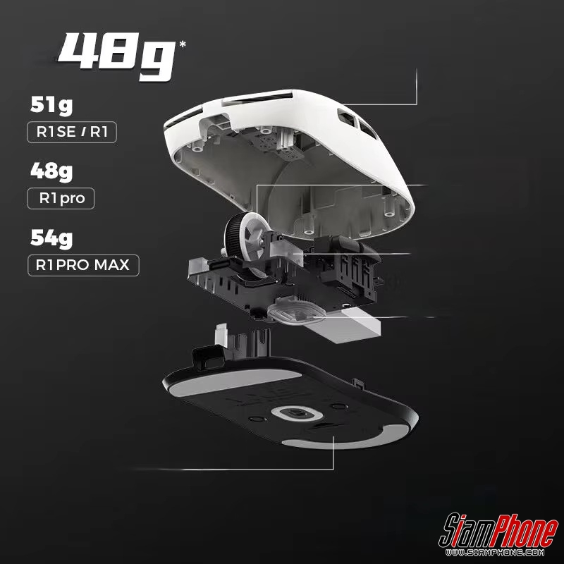 แม้จะอัดแน่นด้วยเทคโนโลยี แต่ VXE R1 Pro Max ยังคงรักษาจุดเด่นเรื่องน้ำหนักที่เบาเพียง 54 กรัม โดยในรุ่น Pro Max ได้มีการอัปเกรดแบตเตอรี่เป็น 500mAh ทำให้ใช้งานได้นานกว่า 150 ชั่วโมงในโหมดปกติ ซึ่งถือว่าอึดกว่ารุ่น Pro ทั่วไป ตัวเมาส์มาพร้อมรูปทรงสมมาตรที่จับถนัดมือและเคลือบผิวแบบ Ice-feeling Coating ที่ให้ความรู้สึกพรีเมียม ช่วยลดคราบเหงื่อและเพิ่มความกระชับในการจับผสานกับสวิตช์คลิก Kailh White Blade ที่รองรับการกดได้ถึง 100 ล้านครั้ง และติดตั้ง PTFE Skates 100% ด้านล่างเพื่อการลากเมาส์ที่ลื่นไหลไร้แรงต้าน