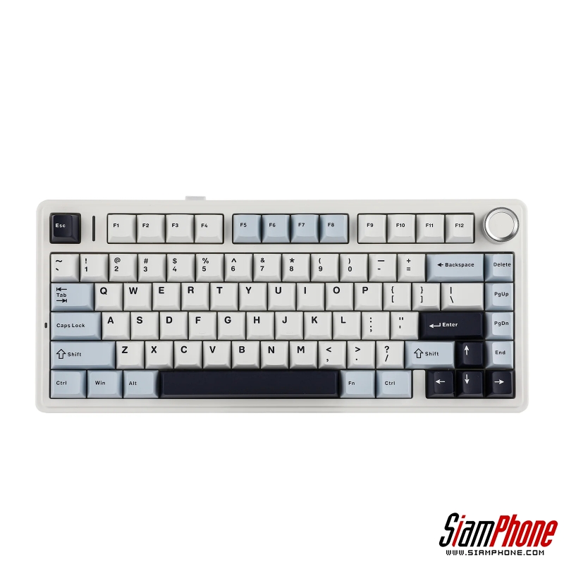 ด้านดีไซน์มาในเลย์เอาต์ 75% (80 ปุ่ม) ที่ประหยัดพื้นที่แต่ยังคงปุ่มฟังก์ชันไว้ครบครัน โดดเด่นด้วยปุ่มหมุนมัลติมีเดียโลหะ (Metal Knob) ที่ใช้ปรับเสียงได้สะดวกและคีย์แคป PBT พิมพ์ตัวอักษรสองชั้นทรง Cherry ที่ให้ผิวสัมผัสดีเยี่ยมและทนทาน นอกจากนี้ยังอัดแน่นด้วยฟีเจอร์สำหรับเกมเมอร์ ไม่ว่าจะเป็นอัตราการส่งข้อมูล 1000Hz (ในโหมด 2.4G/ใช้สาย) ที่ตอบสนองฉับไว รองรับการกดพร้อมกันได้ทุกปุ่มและไฟ RGB ที่ปรับแต่งเอฟเฟกต์หรือโหมดตามจังหวะเพลงได้ผ่านซอฟต์แวร์ (เฉพาะ Windows) ด้านหลังคีย์บอร์ดยังใส่ใจสรีรศาสตร์ด้วยขาตั้งปรับระดับได้ 2 ระดับ เพื่อให้องศาการพิมพ์ที่สบายข้อมือที่สุด