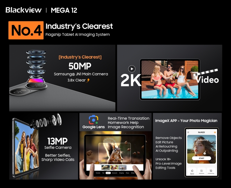 ยกระดับการถ่ายภาพบนแท็บเล็ตด้วยกล้องหลัง 50MP เซนเซอร์ Samsung JN1 ที่ให้ความคมชัดสูง เหมาะอย่างยิ่งสำหรับการสแกนเอกสาร, การบันทึกเนื้อหาการเรียน และการถ่ายภาพทั่วไป ส่วนกล้องหน้า 13MP รองรับวิดีโอคอลคมชัด พร้อมฟีเจอร์ถ่ายวิดีโอระดับ 2K, Google Lens และเครื่องมือแต่งภาพด้วย AI (ImageX) ที่ช่วยให้การแปลภาษา จดจำวัตถุ หรือปรับแต่งรูปภาพเป็นเรื่องง่ายเพียงปลายนิ้วสัมผัส เปลี่ยนกล้องให้เป็นเครื่องมือเพิ่มประสิทธิภาพการทำงานอัจฉริยะได้อย่างสมบูรณ์แบบ