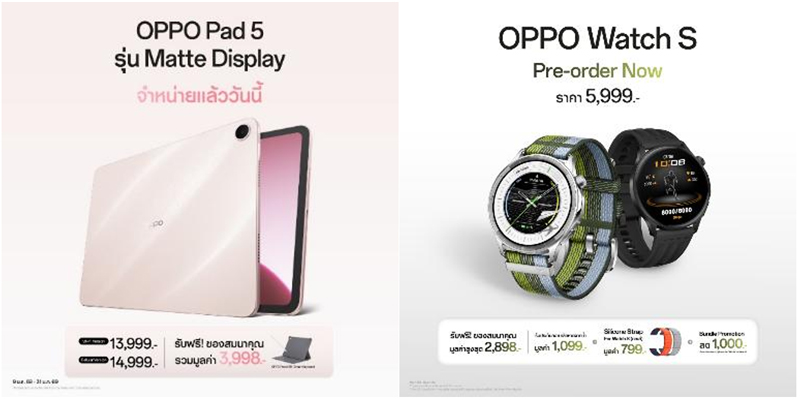 เติมเต็ม Ecosystem ให้ล้ำหน้าในทุกประสบการณ์ด้วย OPPO Watch S และ OPPO Pad 5 รุ่นใหม่ล่าสุด