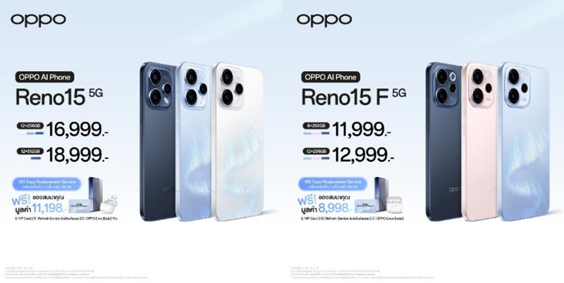 ลูกค้าที่จอง OPPO Reno15 5G รับสิทธิพิเศษมูลค่า 11,198 บาท ประกอบด้วย