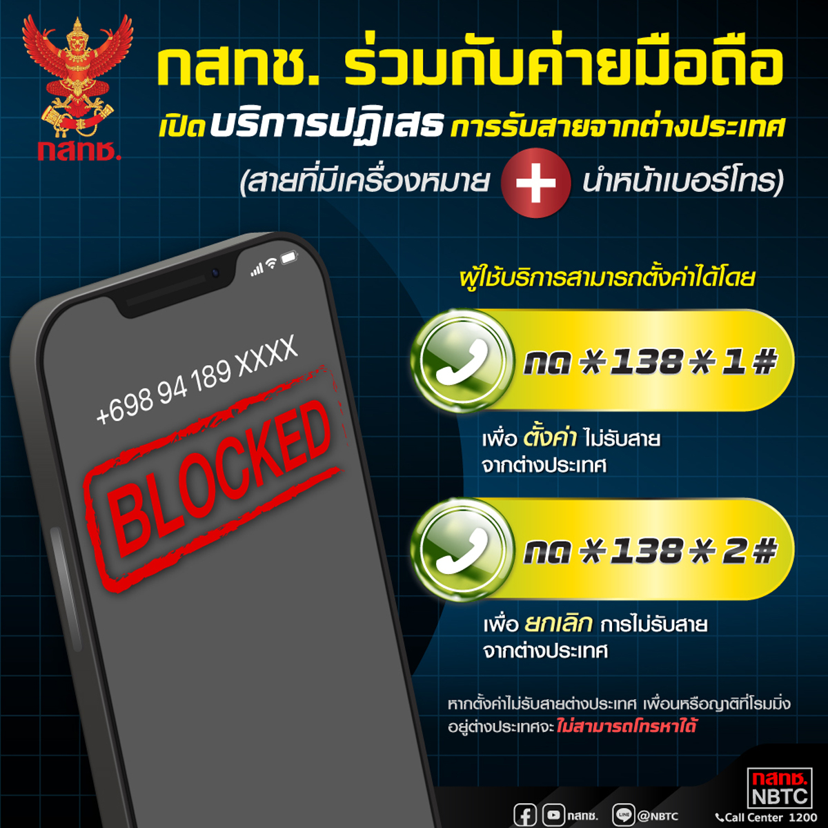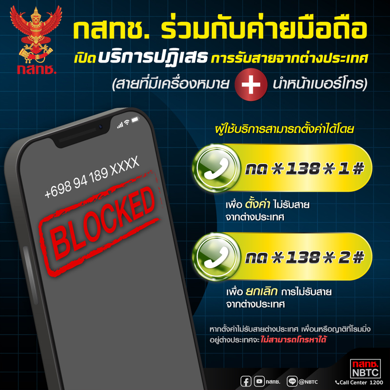 นายไตรรัตน์ วิริยะศิริกุล รองเลขาธิการ รักษาการแทนเลขาธิการคณะกรรมการกิจการกระจายเสียง กิจการโทรทัศน์ และกิจการโทรคมนาคมแห่งชาติ เปิดเผยว่า ขอให้ประชาชนสังเกตเบอร์ที่โทรเข้าก่อนรับสาย เพื่อป้องกันการหลองลวงจากมิจฉาชีพ โดยเฉพาะสายจากต่างประเทศ เนื่องจากได้รับแจ้งจากเจ้าหน้าที่ตำรวจว่ามิจฉาชีพได้กลับมาใช้วิธีโทรจากต่างประเทศในการหลอกลวงและประชาชนหลงเชื่อจำนวนมาก