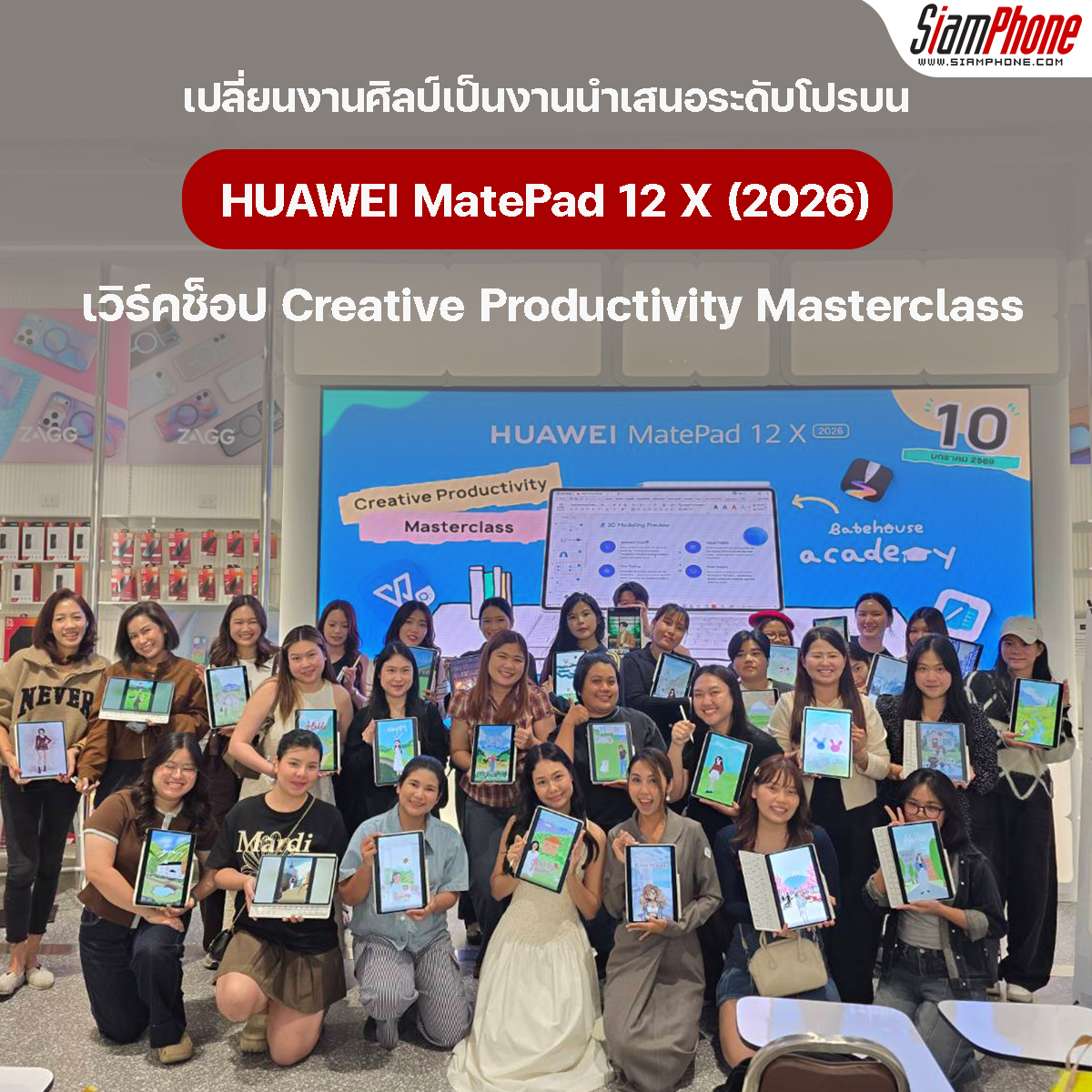 หัวเว่ย คอนซูมเมอร์ บิสสิเนส กรุ๊ป จัดเวิร์คช็อปสุดพิเศษ "Creative Productivity Masterclass" โดยเชิญชวนเหล่าครีเอเตอร์และผู้ที่สนใจสัมผัสประสบการณ์การสร้างสรรค์งานศิลปะ และการนำเสนอระดับมืออาชีพอย่างเหนือชั้นบน HUAWEI MatePad 12 X (2026) แท็บเล็ตเรือธงที่มาพร้อมพลังการทำงานระดับพีซีด้วย PC-level WPS Office 3.0 และแอปพลิเคชันให้เลือกสรรมากมายบน AppGallery ณ TECHHOUSE by .life One Bangkok เมื่อวันที่ 10 มกราคม 2568 ที่ผ่านมา ผลักดันขีดจำกัดของการทำงานและการสร้างสรรค์อย่างไร้รอยต่อ