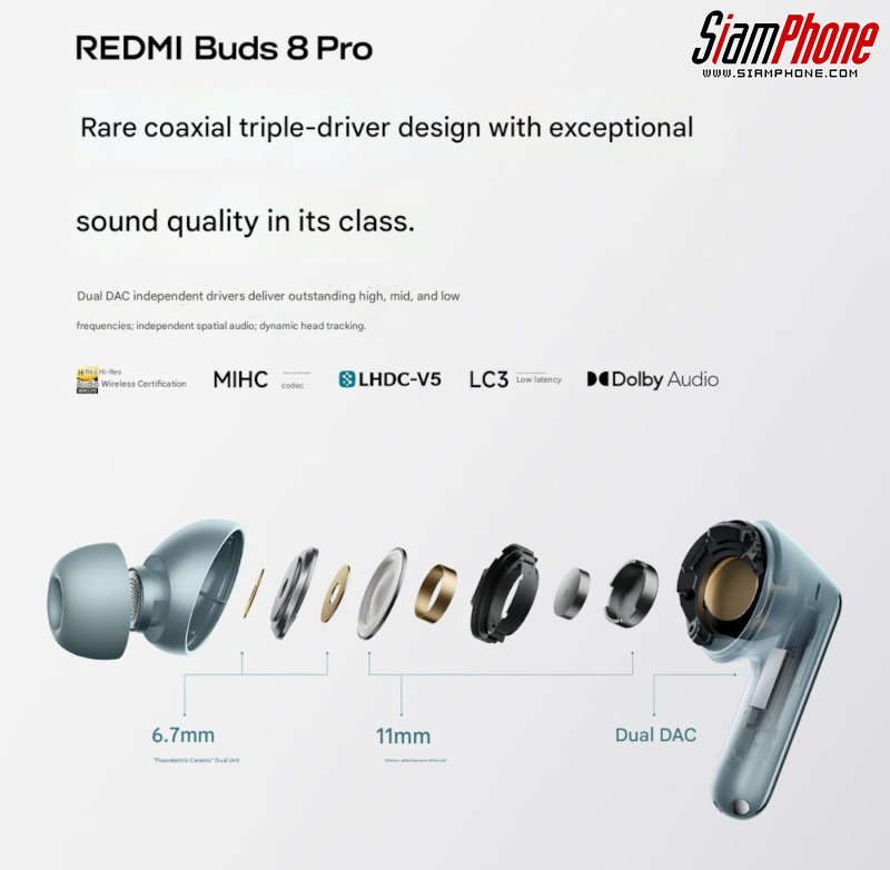 Redmi Buds 8 Pro ถูกวางตำแหน่งให้เป็นหูฟัง TWS ระดับพรีเมียมในราคาที่เข้าถึงได้ โดยชูจุดเด่นด้านวิศวกรรมเสียงที่ซับซ้อนและการอัปเกรดระบบตัดเสียงรบกวนอัจฉริยะ เพื่อมอบประสบการณ์ฟังเพลงระดับ Hi-Res อย่างเต็มรูปแบบ