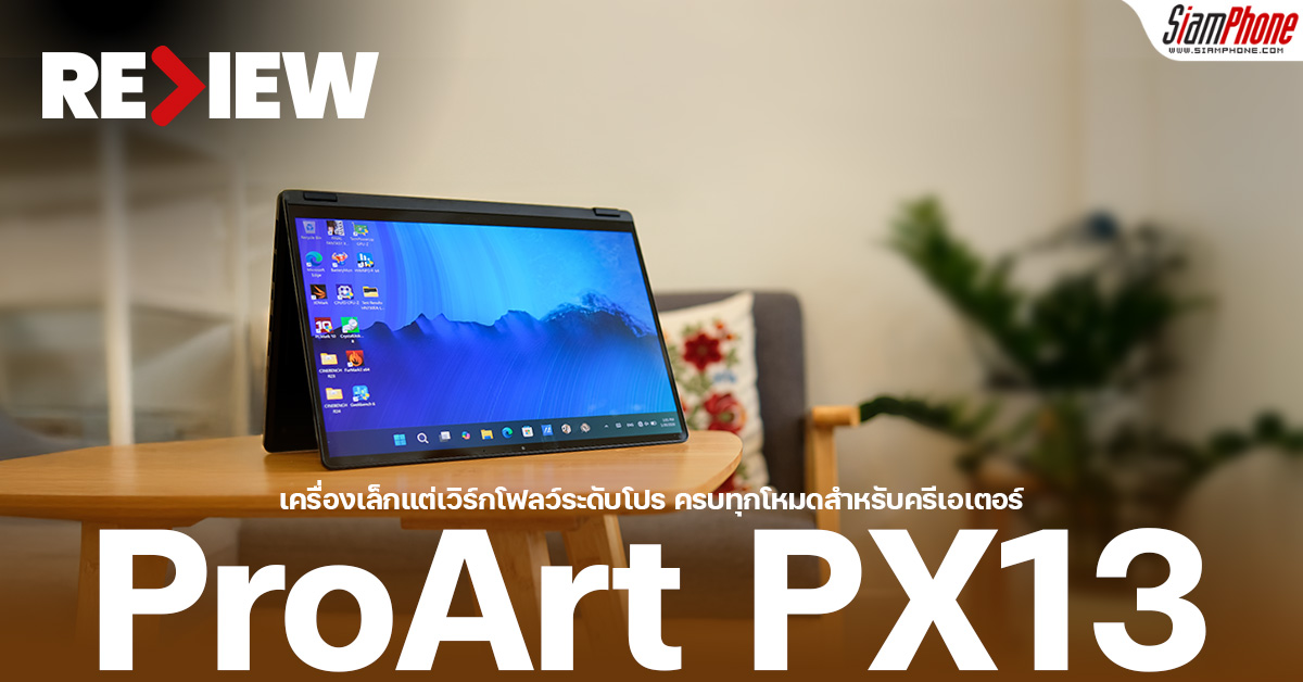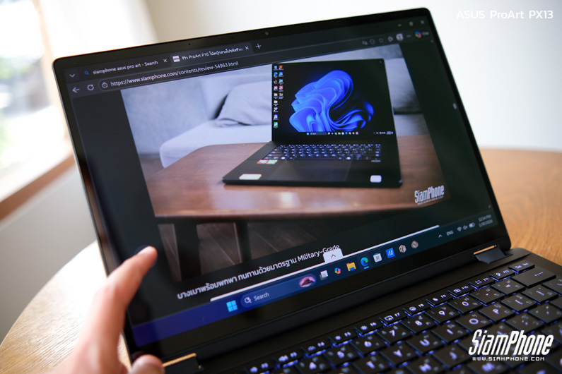 ด้วยน้ำหนักเพียง 1.39 กิโลกรัม และแบตเตอรี่ขนาดใหญ่ 73Wh ทำให้ ProArt PX13 เหมาะกับการพกพาไปทำงานนอกสถานที่ ตัวเครื่องยังผ่านมาตรฐานความทนทานระดับกองทัพ US MIL-STD-810H ช่วยเพิ่มความอุ่นใจในการใช้งานจริง ไม่ว่าจะพกไปถ่ายงานหรือเดินทางบ่อยแค่ไหนก็พร้อมใช้งาน