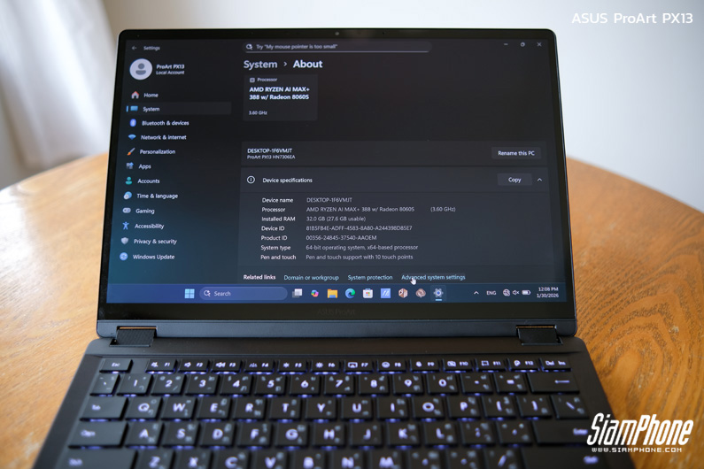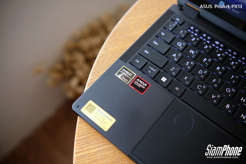 หัวใจหลักของ ProArt PX13 คือโปรเซสเซอร์ AMD Ryzen™ AI MAX+ 388 ที่มาพร้อม 8 คอร์ 16 เธรด และความเร็วสูงสุด 5.0GHz เสริมพลังด้วย AMD XDNA™ NPU ที่รองรับการประมวลผล AI สูงสุด 50 TOPS ทำให้การทำงานด้าน AI, งานสร้างสรรค์ หรือแม้แต่การใช้งานหลายแอปฯ พร้อมกันเป็นไปอย่างลื่นไหล เหมาะสำหรับครีเอเตอร์ที่ต้องการประสิทธิภาพสูงในเครื่องขนาดกะทัดรัด