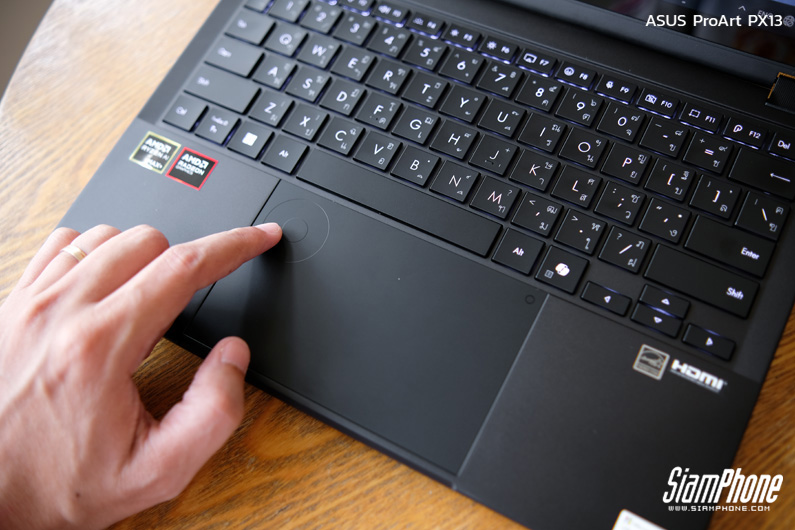 หนึ่งในจุดเด่นของ ProArt PX13 คือ ASUS DialPad ที่ฝังอยู่บนทัชแพด ช่วยให้ปรับค่าต่างๆ ในโปรแกรม Adobe และ CapCut ได้อย่างรวดเร็วและแม่นยำ เสริมด้วยซอฟต์แวร์ AI อย่าง StoryCube ที่ช่วยจัดการไฟล์ภาพและวิดีโอ รวมถึงฟีเจอร์ Copilot และระบบความปลอดภัยด้วย Windows Hello ช่วยให้การทำงานสะดวก ปลอดภัย และเป็นส่วนตัวมากยิ่งขึ้น