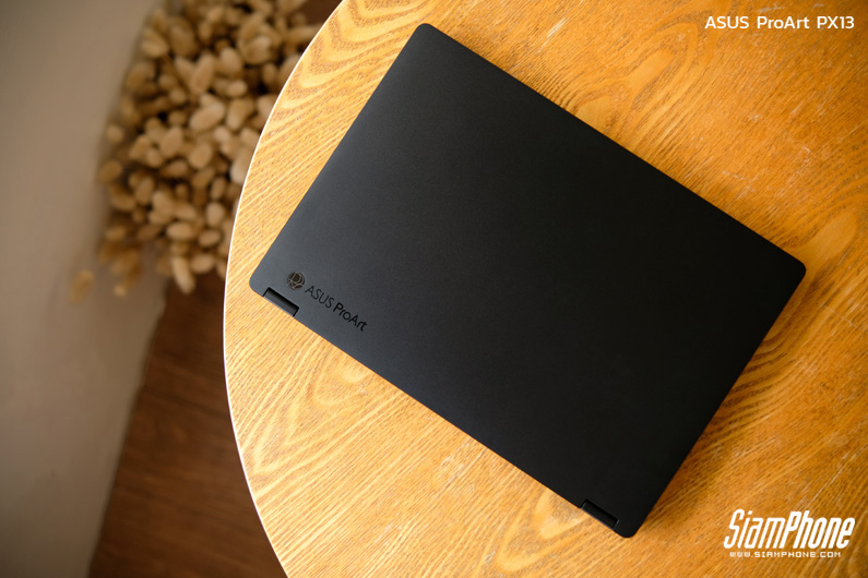 ProArt PX13 ถูกออกแบบมาเพื่อตอบโจทย์กลุ่ม Content Creator อย่างแท้จริง โดยเน้นความคอมแพ็กและการพกพาที่สะดวก แต่ยังคงอัดแน่นด้วยประสิทธิภาพระดับสูง ตัวเครื่องมาในดีไซน์เรียบหรูสี Nano Black พร้อมบานพับหน้าจอแบบ 360 องศา ช่วยเพิ่มความยืดหยุ่นในการใช้งาน ไม่ว่าจะทำงาน ตัดต่อ วาดภาพ หรือพรีเซนต์งานในสถานการณ์ต่างๆ ก็สามารถปรับรูปแบบการใช้งานได้ตามต้องการ