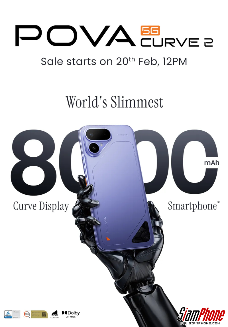 TECNO สร้างปรากฏการณ์ใหม่ในวงการสมาร์ตโฟนด้วยการประกาศเปิดตัว TECNO Pova Curve 2 5G อย่างเป็นทางการในประเทศอินเดีย โดยชูจุดเด่นด้วยการเป็นสมาร์ตโฟนจอโค้งที่บางที่สุดในโลกเมื่อเทียบกับความจุแบตเตอรี่มหาศาล มุ่งตอบโจทย์ผู้ใช้งานที่ต้องการทั้งความสวยงามพรีเมียมและความอึดของแบตเตอรี่ในเครื่องเดียว