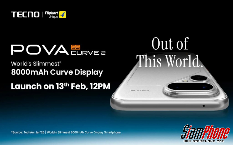 TECNO Pova Curve 2 5G จะเริ่มวางจำหน่ายในประเทศอินเดียผ่าน Flipkart ตั้งแต่วันที่ 20 กุมภาพันธ์ 2026 เวลา 12:00 น. เป็นต้นไป โดยมีให้เลือก 3 สี ได้แก่ Storm Titanium, Melting Silver และ Mystic Purple