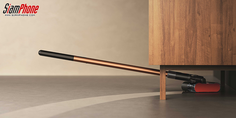 เครื่องถูพื้นที่บางและเบาที่สุดของ Dyson วางราบเพื่อทำความสะอาดในพื้นที่แคบ