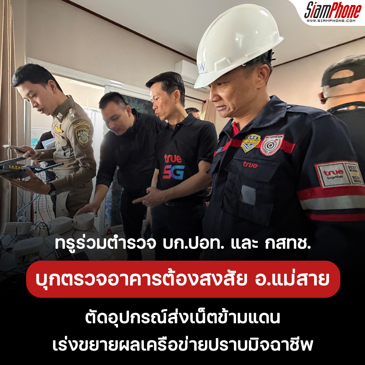 ทรู คอร์ปอเรชั่น สนับสนุนปฏิบัติการร่วมกับกองบังคับการปราบปรามการกระทำความผิดเกี่ยวกับอาชญากรรมทางเทคโนโลยี (บก.ปอท.) และ สำนักงาน กสทช. ลงพื้นที่อำเภอแม่สาย จังหวัดเชียงราย เพื่อทลายฐานแก๊งคอลเซ็นเตอร์ ตรวจสอบการใช้งานอินเทอร์เน็ตที่เข้าข่ายผิดกฎหมายและตัดการใช้งานทันที หลังทรูร่วมกับเจ้าหน้าที่ตำรวจพบสัญญาณการใช้งานผิดปกติจากอาคารต้องสงสัย โดยมีเป้าหมายเพื่อสกัดการนำสัญญาณอินเทอร์เน็ตไปใช้ในทางมิชอบและลักลอบใช้งานข้ามแดน พร้อมตัดวงจรอาชญากรรมออนไลน์ที่เชื่อมโยงกับเครือข่ายข้ามชาติ