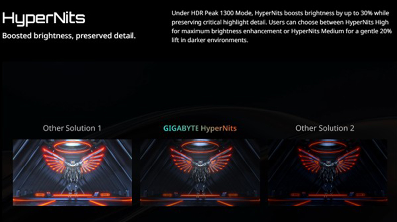 GO27Q24G พร้อมรองรับสไตล์การเล่นที่แตกต่างด้วยการผสานรวมเทคโนโลยี HyperNits เอกสิทธิ์เฉพาะจาก GIGABYTE ที่ช่วยเพิ่มความสว่างโดยรวมของคอนเทนต์ HDR ในโหมด Peak 1300 ได้อย่างชาญฉลาดโดยที่ยังคงรักษาความคมชัดของรายละเอียดในส่วนสว่างไว้ได้อย่างครบถ้วน โดยมีตัวเลือกทั้ง HyperNits High และ HyperNits Medium ที่ปรับแต่งมาให้เหมาะสมกับสภาพแสงโดยรอบที่แตกต่างกัน และเพื่อต่อยอดความคมชัดนี้ Tactical Features จะเปลี่ยนประสิทธิภาพการแสดงผลให้กลายเป็นการควบคุมที่แม่นยำ โดยเฉพาะในเกมแนว FPS และ MOBA ที่ต้องใช้ความรวดเร็วสูง อีกทั้งฟีเจอร์ Tactical Switch 2.0 ช่วยให้ปรับความละเอียดและอัตราส่วนภาพได้ทันที ขณะที่ Ultra Clear ช่วยลดความเบลอของการเคลื่อนไหว และ Black Equalizer ช่วยเผยรายละเอียดที่ซ่อนอยู่ในเงามืด พร้อมเพิ่มขีดความสามารถให้ผู้เล่นมีปฏิกิริยาตอบโต้ที่รวดเร็ว และตัดสินใจในเกมได้อย่างแม่นยำยิ่งขึ้นในช่วงเวลาสำคัญของการแข่งขัน