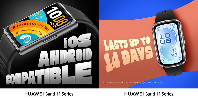 หัวเว่ย คอนซูมเมอร์ บิสสิเนส กรุ๊ป (ประเทศไทย) เปิดตัวสมาร์ทแบนด์ไลน์อัปใหม่ HUAWEI Band 11 Series อันได้แก่ HUAWEI Band 11 และ HUAWEI Band 11 Pro เจาะตลาดผู้บริโภคกลุ่มเริ่มต้นที่หันมาดูแลสุขภาพ สอดรับเทรนด์ออกกำลังกายที่กำลังมาแรง ให้ผู้ใช้ได้ยกระดับประสบการณ์การใช้งานสมาร์ทแบนด์ไปอีกขั้นด้วยหน้าจอขนาดใหญ่ที่คมชัด อัดแน่นด้วยฟีเจอร์สุขภาพขั้นสูง ในดีไซน์ที่บางเบา สวมใส่สบายตลอดวัน จัดเต็มระบบวิเคราะห์สุขภาพอัจฉริยะ รองรับการติดตามการนอนที่แม่นยำยิ่งขึ้น พร้อมการดูแลสุขภาพหัวใจในระดับมืออาชีพ เพื่อความเข้าใจสุขภาพในทุกวันอย่างลึกซึ้ง ครบครันด้วยโหมดออกกำลังกายมากกว่า 100 รูปแบบ รองรับการใช้งานทั้งระบบ Android และ iOS พร้อมแบตเตอรี่ที่ใช้งานได้นานสูงสุด 14 วัน เพื่อการดูแลสุขภาพอย่างต่อเนื่องในชีวิตประจำวัน เตรียมวางจำหน่ายในประเทศไทยที่ราคาเริ่มต้นเพียง 899 บาทเท่านั้น