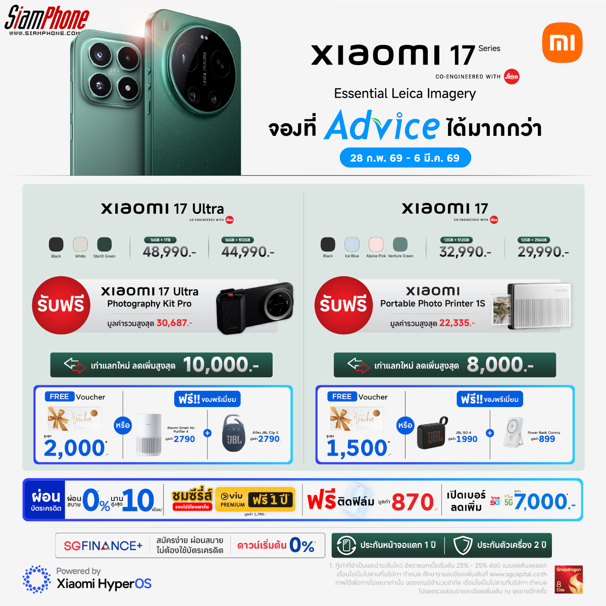 ผู้ที่สนใจสัมผัสประสบการณ์นวัตกรรมจาก Xiaomi 17 Series สามารถเลือกซื้อได้ผ่านช่องทางตัวแทนจำหน่ายอย่างเป็นทางการที่ Advice Online: คลิกที่นี่เพื่อดูรายละเอียดสินค้า