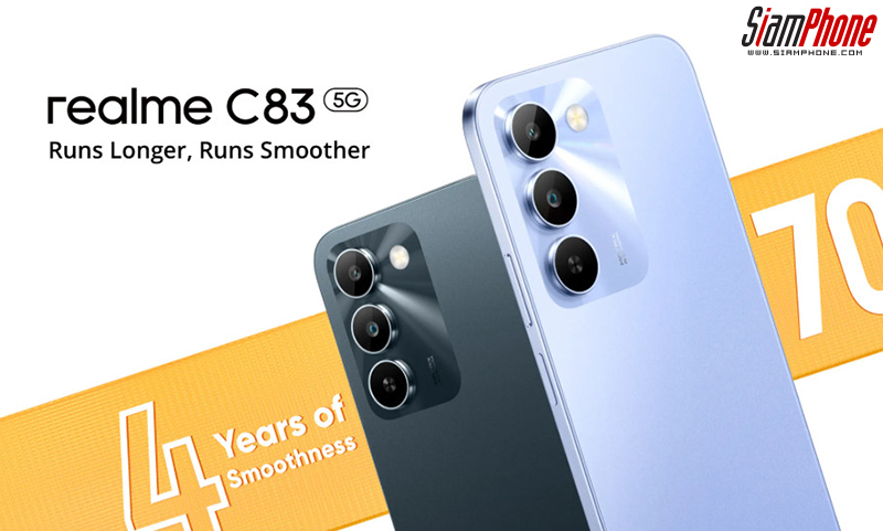 เบื้องต้น realme C83 5G มีการเปิดตัวในประเทศอินเดีย สนนราคาเริ่มต้นที่ 13,499 รูปี หรือประมาณ 4,600 บาท มีให้เลือก 2 สีคือ Blooming Purple และ Sprouting Green ส่วนการขายในประเทศไทยยังต้องรอลุ้นกันต่อไป